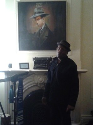 Parlour in Langston Hughes’ home in Harlem with author seated beneath Hughes’ photo