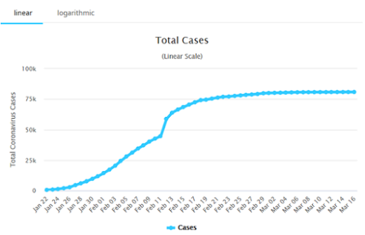 That’s 0 to 50K in 20 days, and in only 16 more days there was a stable total of 80K cases reached, or 80,000 Chinese who had been hit by the coronavirus-19 infection.