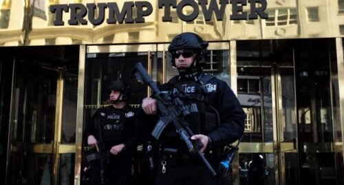 New York Police Department (NYPD) officers guard the main entrance of the Trump Tower in New York on November 14, 2016 (Jewel Samad AFP/Getty Images)