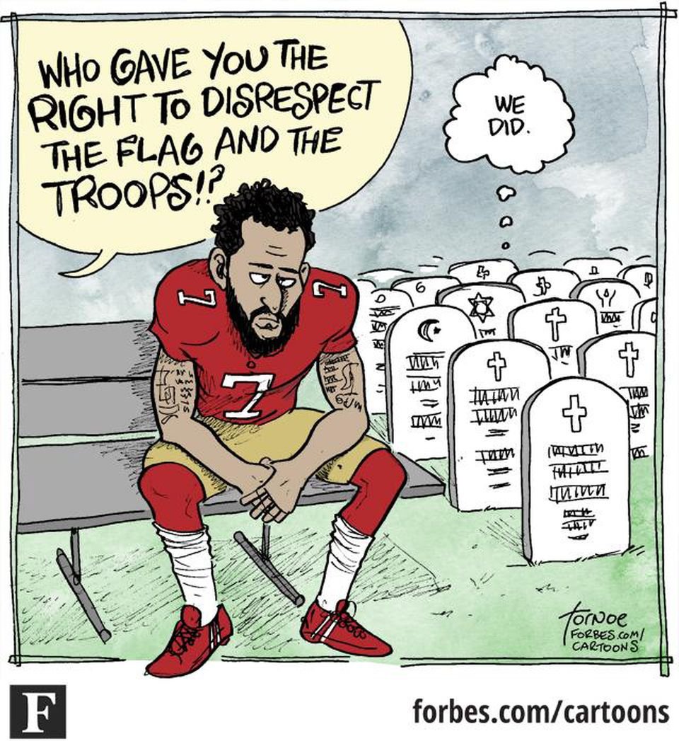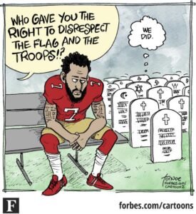 Instead, Goodell aligned himself with a president accused of racism, a man slumping badly in the polls to the weakest of opponents that is beyond imagination, Joe Biden, a man plagued by his own racism and glaring cognitive deficiency. Donald Trump’s ire was evoked by the peaceful protests of some NFL (predominantly Black) players who were taking a knee during the playing of the national anthem. The protests were started by quarterback Kaepernick. Right-wingers, however, transmogrified the protests into disrespect for the flag and the US military.