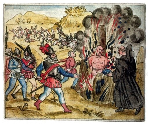Hatuey was brought before the Spanish general who told him, “If you accept the King of Spain as your sovereign and Jesus Christ as your savior, then we will kill you quickly and you will pass to everlasting paradise. But if you do not accept the King and Jesus, then we will burn you alive and you will be damned to burn in hell for eternity.”