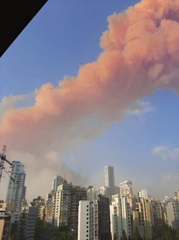Everyone in Lebanon needs to stay indoor… From the look of the flame, the explosion looks nitric acid-based. PLEASE STAY INSIDE!!!