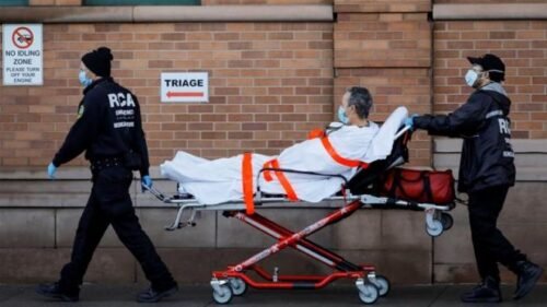 Paramedics taking a patient into an Emergency Room at Maimonides Medical Center in Brooklyn (Andrew Kelly/Reuters)