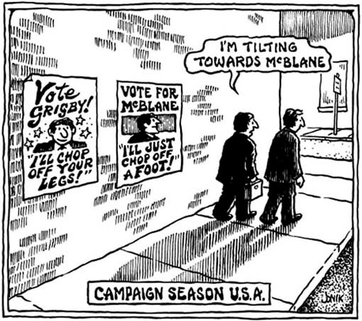This is a depressing article. Neuberger is, with good reason, a pessimist. Here’s what he says: “In other words, unless the Democratic Party becomes suddenly anti-neoliberal, the answer to our initial question—What’s the earliest a progressive Democrat can be elected president?–is Never or Too Late.” But why the pessimism? Why would it be too late? The answer lies in a political cartoon that appears in both versions of the article.