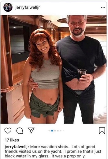 These revelations came after embarrassing reports of Falwell’s attendance at rock concerts, evidence of drinking, sharing nude photos of his wife with male confidants, and the unzipped photo on social media. A Liberty University student claimed that when he stayed over at the Falwell home (after a band practice in 2008 when he was 22), Becki “was the aggressor” in joining him in bed and performing oral sex on him. In the wake of such reports the Trustees forced Falwell to step down from his position, exposed as a total hypocrite.