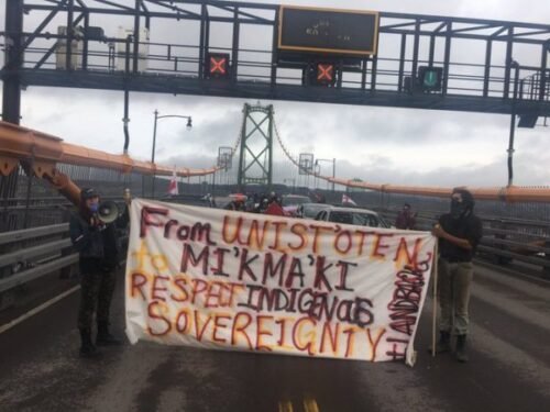 Across the country in Halifax, people blockaded a major bridge in solidarity with the Mi’kmaq and their struggle to defend their land and way of life. Virtual events were also held, and people sent solidarity messages on social media using the hashtag #CoastToCoast.