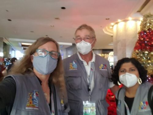 For the past 18 months, those who were arrested on May 16 had to check in regularly with the federal government and required permission from the judge, who had a clear disdain for the defendants, to travel. The three who remain marked their freedom this week by traveling on December 3 to Venezuela to serve as official international election observers invited by the National Electoral Council. Travel to Venezuela is challenging at the moment due to the United States’ illegal economic blockade.