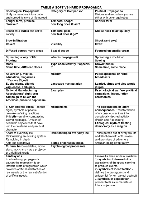 - He distinguished between hard, fast, political propaganda and soft, slow sociological. He called political propaganda “agitation”. Education is not outside propaganda. It is sociological propaganda.