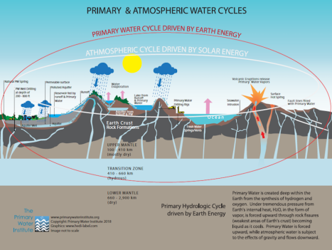 What these researchers call “primary water” or “deep seated water” is classified by the National Ground Water Association (NGWA) simply as a form of “groundwater,” since it is in the ground. But whatever it is called, these newly tapped flows have not been part of the hydrologic cycle for at least the last century. This is shown on testing by the lack of the environmental contaminants found in the hydrologic water cycle. From the time when atomic testing began in the Pacific, hydrologic water has contained traces of tritium, a radioactive isotope of hydrogen used as a fuel in thermonuclear bombs. Primary water shoots up tritium-free —clean, fresh and usually drinkable without filtration.