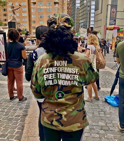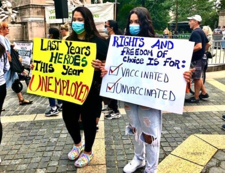 Last month, I stopped by an anti-mandate rally at Columbus Circle/Central Park for a little while. While I was there, a band played mellow music. Much of the crowd was singing along and dancing as I wandered around taking photos and feeling happy to see so many people in attendance — speaking out against repressive and anti-science measures.