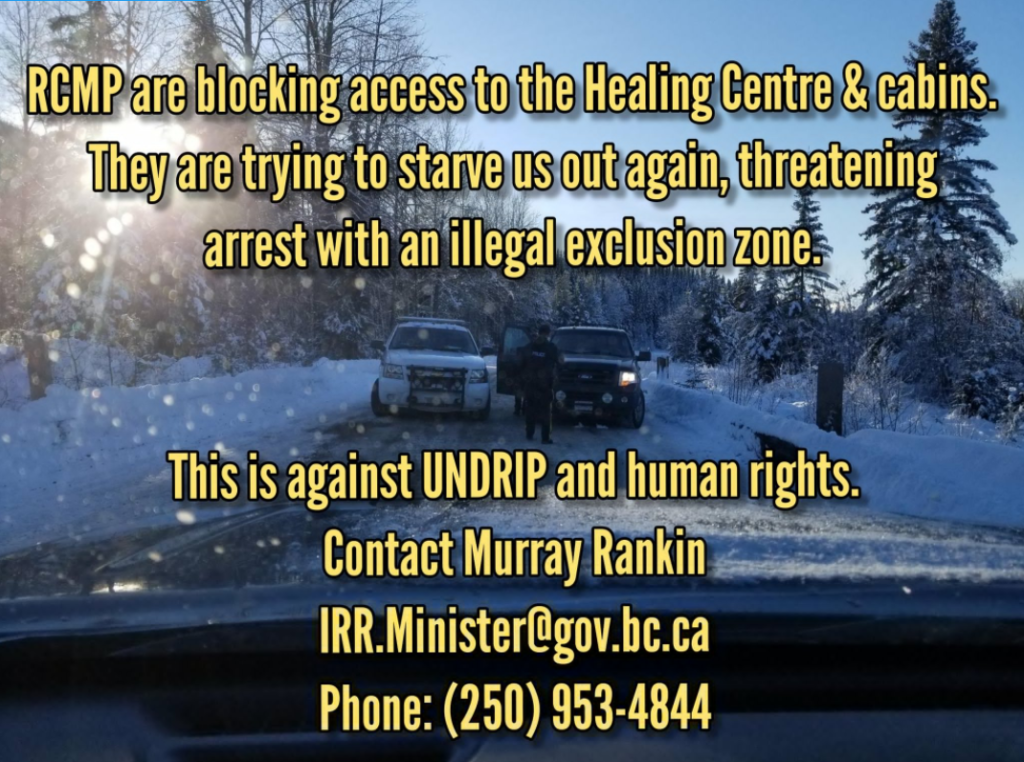 RCMP Set up Illegal Exclusion Zone Blocking Food, Medicine, and People from Reaching Healing Center and Homes on the Territory