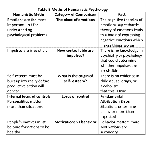 Late in his book, in Chapter 8, Dawes shifts gears from writing about the problems of clinical psychoanalytic therapies to what he unfortunately calls “New Age psychology”. What he is describing (the preoccupation with feelings and the obsession with self-esteem) were happening long before the New Age, the beginnings of which I date around 1978. The school of psychology that fits the bill is humanistic psychology. So, I will continue to describe the results of his research,but I have renamed the school as it is an expression of “Humanistic”, not New Age psychology.
