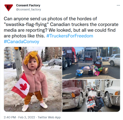 So get out there and support the Canadian transphobic Putin-Nazi truckers … or your local transphobic Putin-Nazi truckers. Don’t worry if you don’t have a swastika flag. The agents provocateurs and the official propagandists in the corporate media will take care of that!