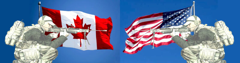 To recap, tensions have been escalating over the past 24 months. Then four weeks ago, the US announced it had irrefutable proof that militant, America-hating militias had joined with the regular military forces of the Canadian Royal Mounted Police, to position a formidable, threatening, highly lethal military presence right on the US border, stretching from Washington State east to Minnesota. Concentrations of troops hunkered in reinforced battlements were also allegedly discovered in southern Ontario and south of Montreal on the border with upstate New York. Secretary of Defense, Chelsea Clinton, stated that this is what prompted the military operation now underway — the mobilization of 250,000 infantry troops, numerous tank and artillery battalions, and full air power support for the invasion.