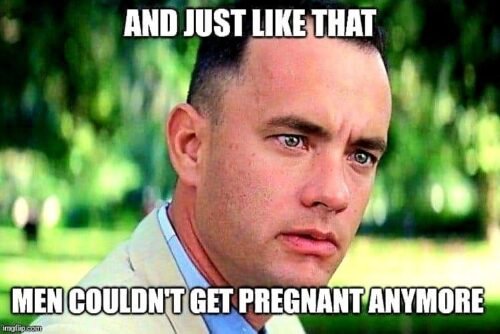 Where exactly is the “false information”? That I’m not really gonna open a yoga school? Nah, those A.I. bots are carefully programmed to suss out unacceptable denials of reality like “Men couldn’t get pregnant anymore.”