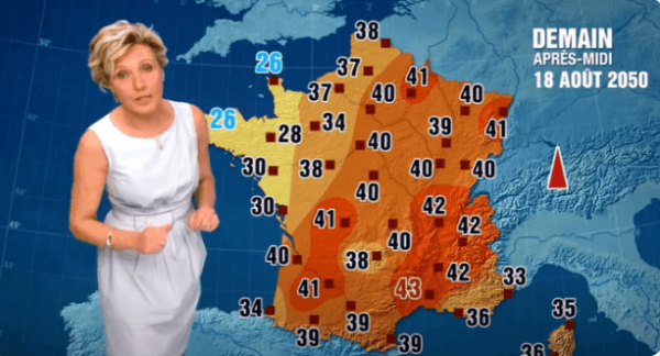 In 2014, this French weather presenter announced the forecast for August 18, 2050 as part of a campaign to alert to the reality of climate change. Now her forecast that day is the actual forecast for the coming 4 or 5 days, in mid-June 2022.