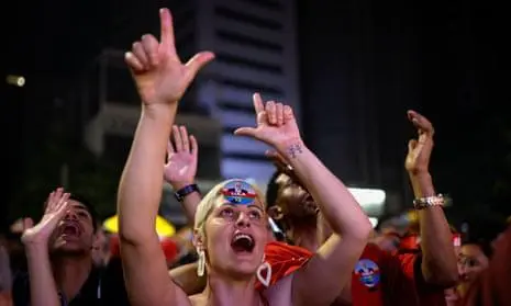 Lula supporters react to Brazilian election results. [Source: theguardian.com]