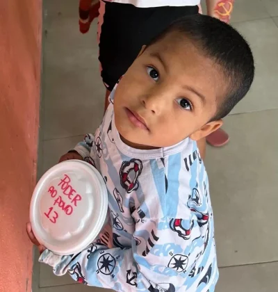 Cidade Triadentes Guaianases Children Holding Food Served by MST [Source: photo by Lauren Smith]