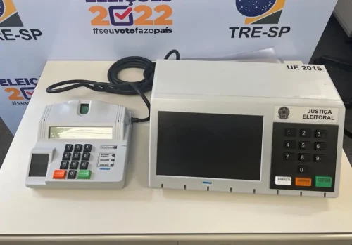 TRE-SP Headquarters. Electronic Voting Machine [Source: photo by Lauren Smith]