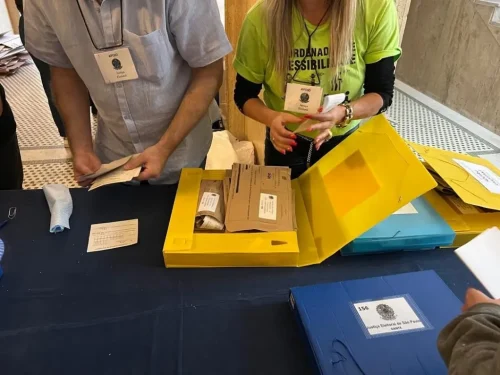 The voting process was quick. The facilities were well staffed, there were numerous electronic machines in multiple classrooms, and it was only a few minutes wait for voters to cast ballots. The young women showed their IDs to TRE-SP representatives, were admitted to the appropriate classrooms, and cast electronic votes. There was much elation in the community at the polling site as voters fulfilled their civic responsibility.