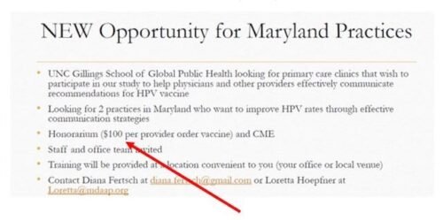 Big Pharma bribed Maryland officials to use an “anti-cancer” vaccine that INCREASES the chances of young girls getting cancer. Related: A couple of the images I placed in this article are slides from a 2018 Maryland HPV Symposium. The slides show how physicians are financially rewarded for pushing the HPV “vaccine” on children.