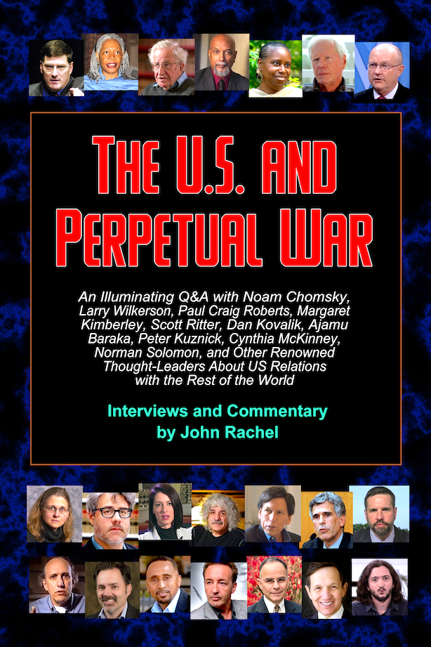 John Rachel, in his book The U.S. and Perpetual War: Interviews and Commentary (Independently published, May 16, 2023, available at Peace Dividend/Books and Amazon) has compiled a unique, concise and astonishingly compelling collection of leading left, liberal, conservative and heterodox thinkers each answering the same fifteen precisely composed questions. The questions concern the current nature of the US empire, putative US democracy, and, most important, what is to be done.
