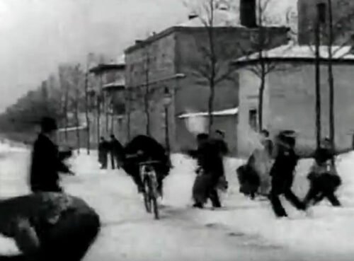 Bataille de boules de neige (Snow Fight) (1896) short silent film produced by the Lumiére brothers. (See video here)