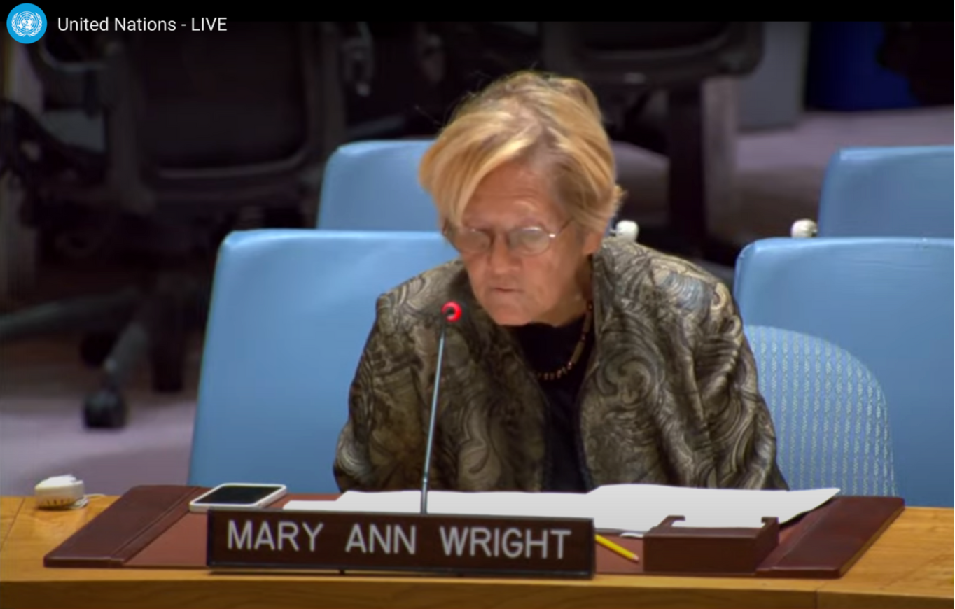 While various briefers and delegates presented conflicting perspectives, CODEPINK member Ann Wright, a retired United States Army colonel and former diplomat, took a different stance. As a civil society representative, she introduced herself as a concerned citizen and taxpayer who resigned from the U.S. Government in 2003 in protest against the Iraq War.