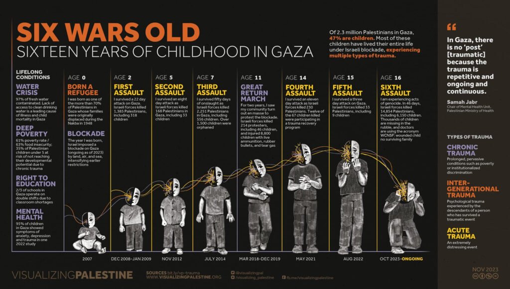 Israel’s repeated military assaults on Gaza have devastating consequences for children. Israel is not only killing Palestinian children at astonishing rates, but also killing the childhood of those who survive.