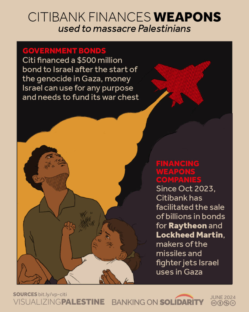 This article was posted on Saturday, June 15th, 2024 at 8:00am and is filed under Banks, Finance, Genocide, Israel (part of Mandate Palestine), Palestine, Weaponry.