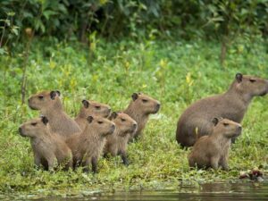 As time passed the savvy cavies cum happybaras assumed prominent positions in waste management, international diplomacy and mediation, replacing lawyers, police and judges. Crime disappeared. Raises and promotions ceased being based on appearance. It was all about the content of the cavy. The capybaras’ practice of alloparenting (it takes a village) became widely accepted. Although capybaras practice the Bumble mating system (females choose males), once male humans learned that there would eventually be twice as many female happybaras for every male happybara they started embracing their inner nutria.
