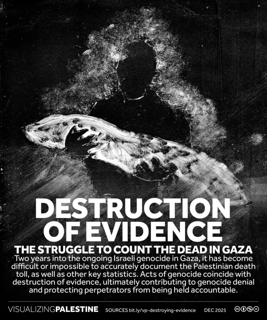 In our latest visual, we highlight how the conditions of genocide make it difficult to accurately document the death toll and other aspects of the ongoing Israeli genocide against Palestinians in Gaza. This visual was inspired by various efforts by public health experts to estimate or project the possible death toll in Gaza, prompting important discussions about the limitations of data during an ongoing genocide. While we cannot yet be certain of the true cost of this genocide in terms of Palestinian lives, we can be certain that widely cited figures are a significant underestimate.