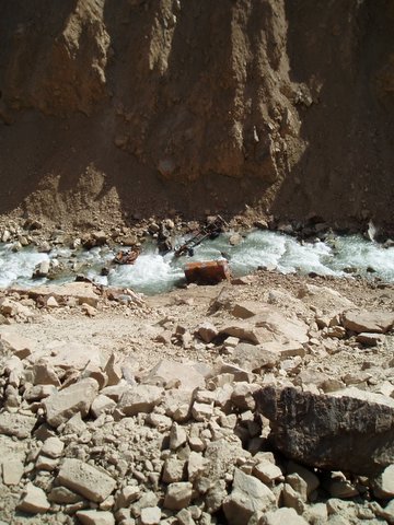 The imperialist Great Game continues to be played out blatantly by neo-colonialists across all its beleaguered historic terrain, throughout the rugged Hindu Kush, Karakoram and Himalayan ranges of the Indian subcontinent. The 480 km "Himalayan Highway," which runs between Manali in the foothills to Leh, Ladakh in the upper Indus Valley, crosses four massive ranges of the Great Himalaya. For four months of the year, before snowfall blocks the passes, the road vectors a steady stream of goods and tourists to Ladakh, but for the most part, it delivers the men and materials of war. We began our journey on our trusty old Royal Enfield Bullet just as the road opened this year, even as the bulldozers were still clearing snow at the top of the passes. The road switchbacks up over passes ranging from 13,000 to more than 18,000 ft, passing into the oxygen-depleted desert realms of black-blue skies, where stars can be seen in the middle of the day. The road itself is a single-lane, intermittently paved rollercoaster ride of high altitude passes, washouts, creek crossings, landslides, glacial melts and broken bridges. It was constructed by the Indian Army to provide an alternative route that avoids the contested Kashmir and Kargil stretches of the main Srinagar-Leh access to Ladakh. It passes through the ancient kingdoms of Lahaul and Spiti, and from there up onto the remote Rupshu plateau before descending into the Indus Valley east of Leh. The people of Ladakh were a foot-travelling culture, and every pass has well-worn foot trails, engineered over time by an unorganized consensus of general use, whereby, according to an average stamina of the travellers, the most suitable path is mutually established and worn down over time. A busy trade flourished in these areas for centuries, which has now been all but wiped out due to the asinine geopolitical squabbles begun by the British and the Russians, and now carried on by India, Pakistan and China. This area was historically self-sufficient, and all the busy trading back and forth by horse, camel, goat and yak caravans once provided a thriving traditional non-monetary economy and a friendly cultural interaction and diversity which is currently sorely lacking.