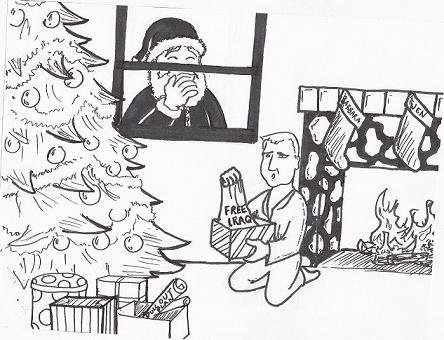 You see Santa's a humanitarian And brings cheer through the night Even to the third world, so you better be nice War is not is not fun and killing is not merry